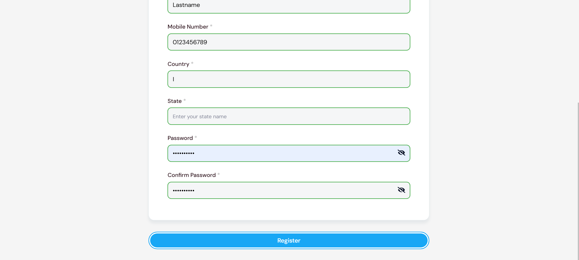 - Mobile Number: Add your Mobile Number.